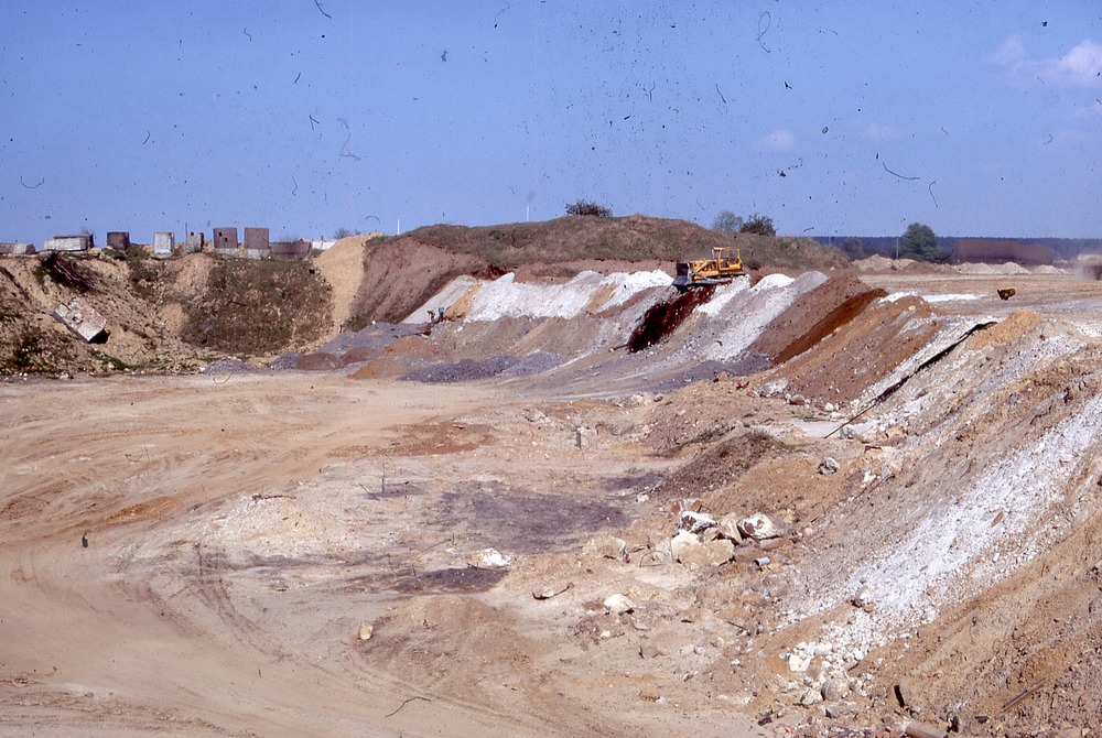 Bilder från stadsdelen Dalhem, Brohult. Stor barskrapad yta med slänt, markarbete pågår. I bakgrunden grävmaskin.