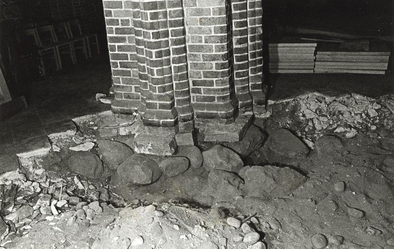 Sjätte pelarparet från väster, norra pelaren, omläggning av golv. Foto från väster.