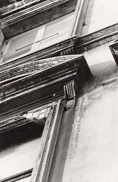 Gatufasad, detalj över 2:a våningens fönster på Trädgårdsgatan 25, Kv. Ruuth 21, före rivningen 1973.