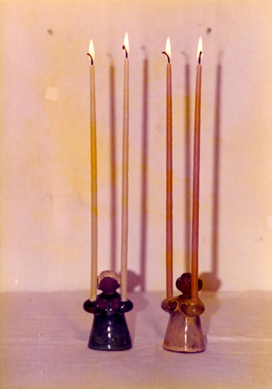 Fotografi föreställande två ljusstakar för två ljus vardera. Stämplat Kodak 73.