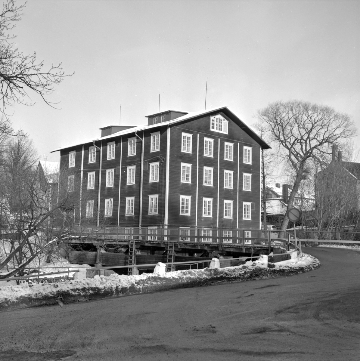 År 1893 köpte Erik Eriksson från Eskilstuna kvarn 10 i Tannefors. På platsen för ett äldre kvarnhus lät han uppföra bildens anläggning som han gav namnet Tannefors Nya Valskvarn. I folkmun kallad Eriksson valskvarn vid sidan av det mer kryptiska Skallebo Rana. Foto 1965.