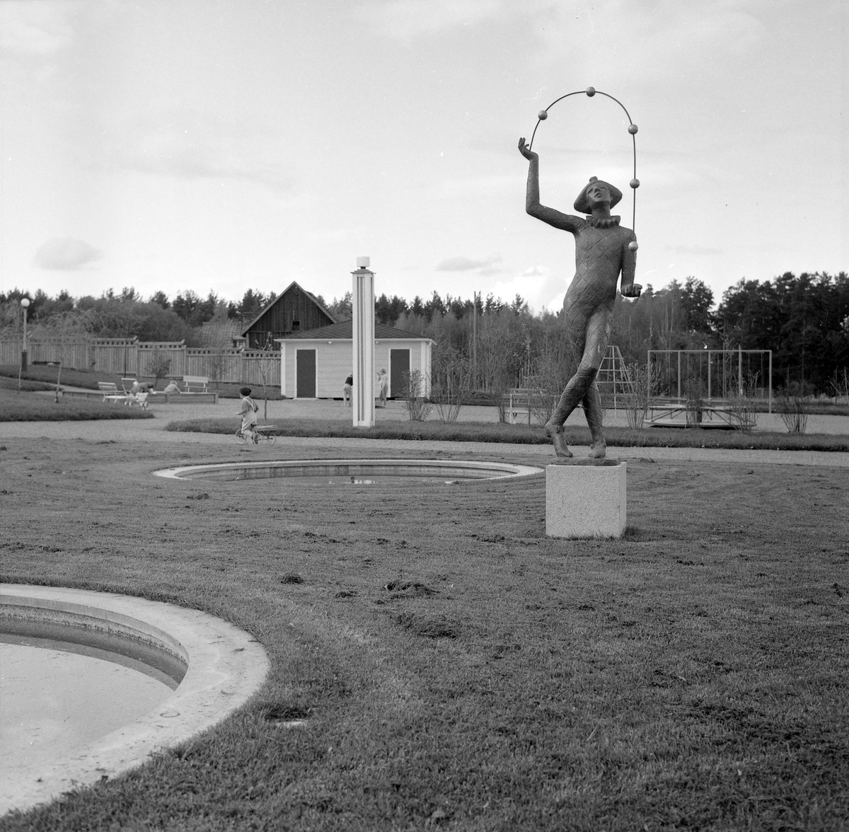 Sten Ericssons bronsskulptur "Gycklaren" i Linköpings Folkets park. Efter folkparkens nedläggelse såldes skulpturen och står upplysningsvis sedan 2015 i Malmö och där på borggården till Malmöhus slott.