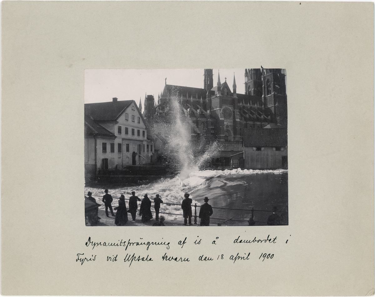 "Dynamitsprängning af is å dambordet i Fyris vid Upsala kvarn", Uppsala 1900