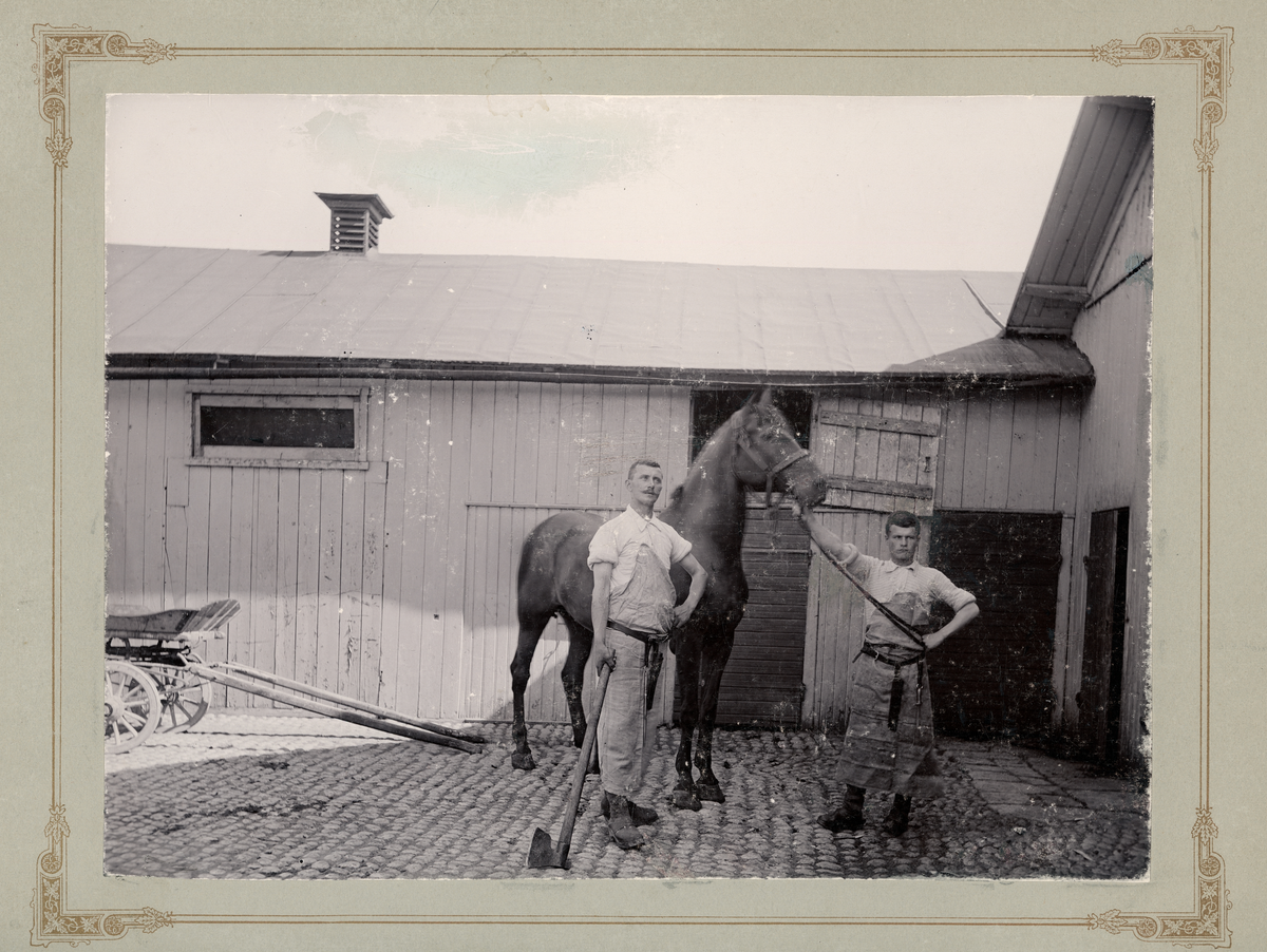 Slaktare Andersson och Gustav Löfgren hos hästslaktare J Eriksson, Uppsala