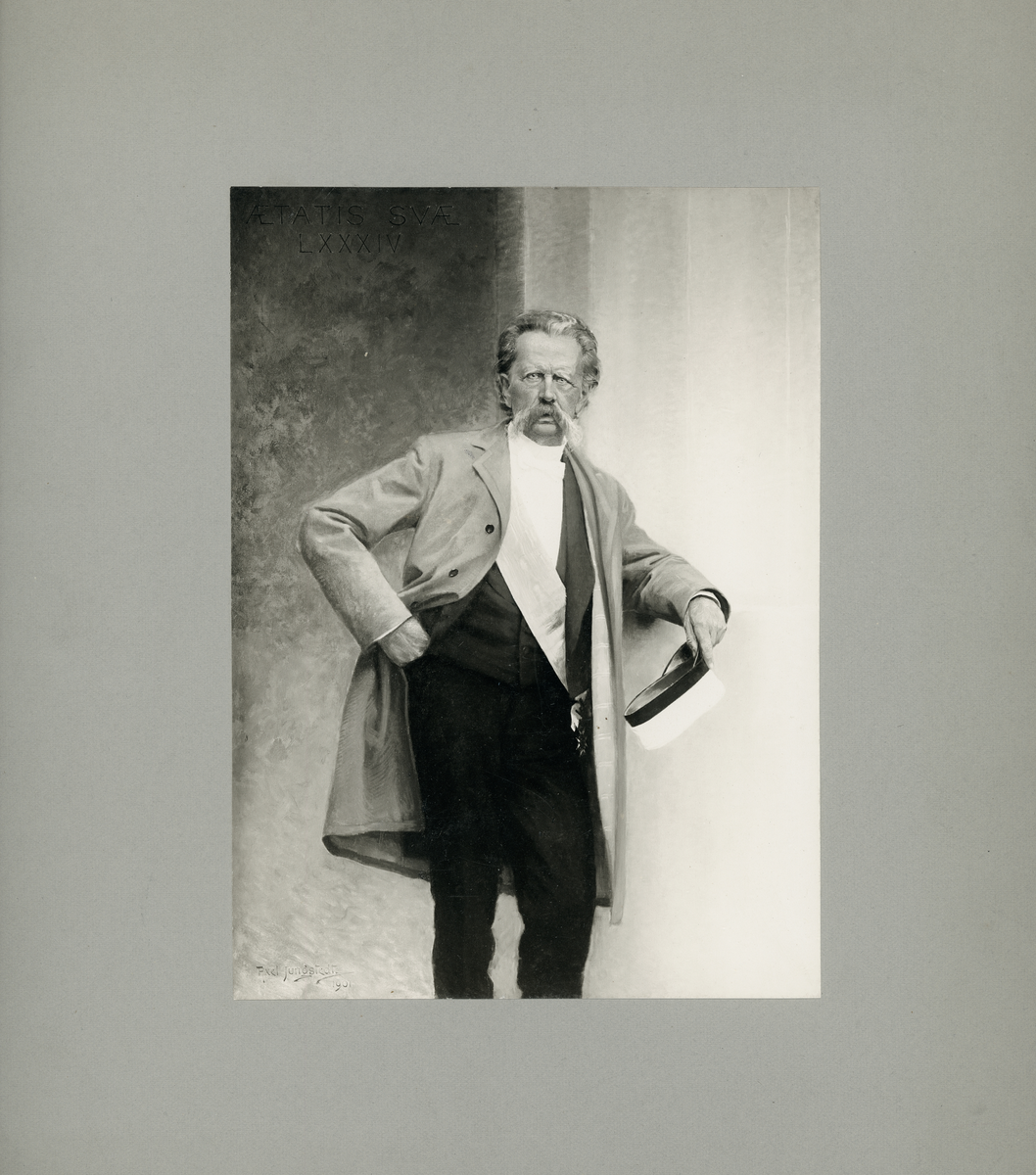 Titel: Reprofotografi - målning föreställande Gunnar Wennerberg med studentmössa i handen