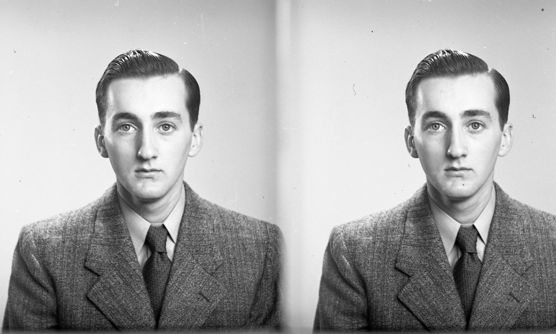 Titel: Passfoto. Porträtt av en oidentifierad man.
