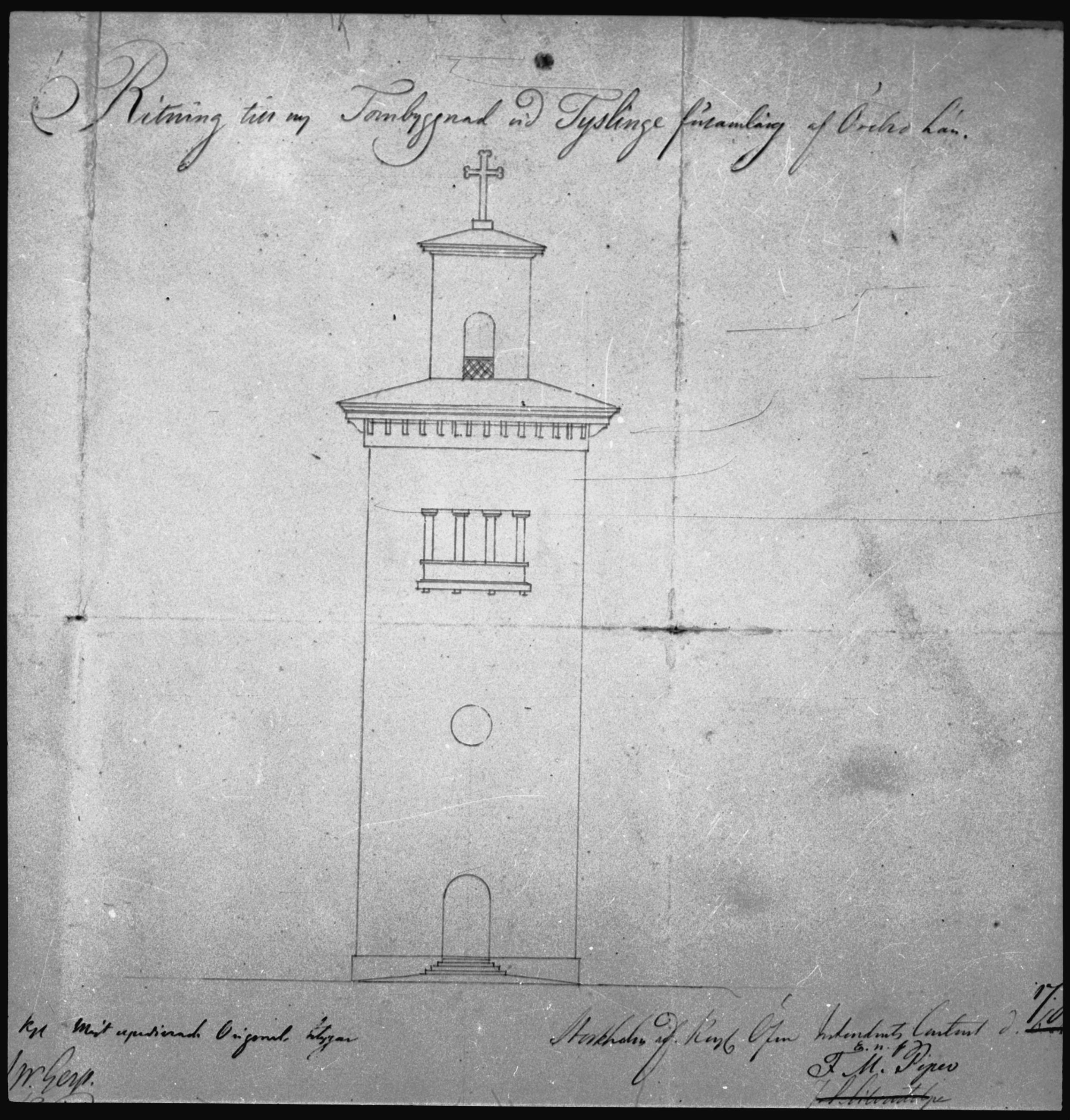 Foto efter ritning till torn signerad J. W. Gerss 1817. Originalet i Byggnadsstyrelsen.
