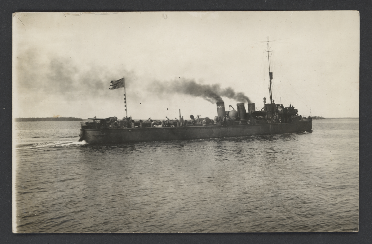 Bilden visar jagaren Munin till havs.