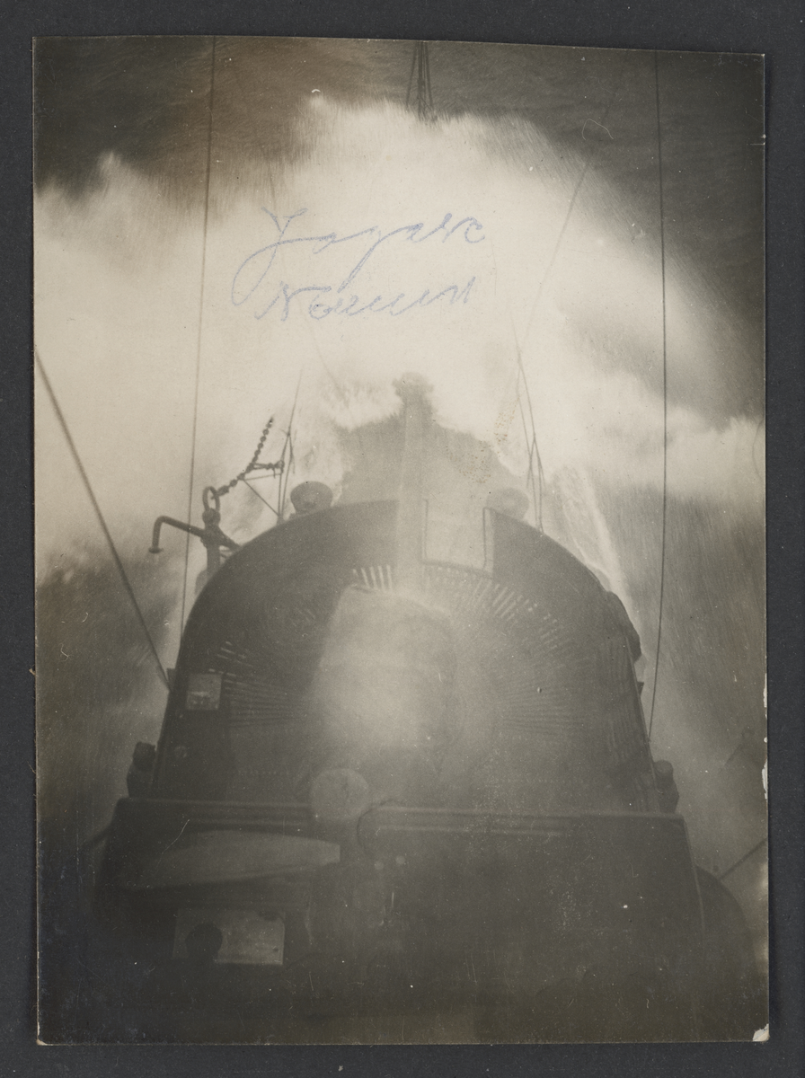 Bilden visar förskeppet av en jagare i hög sjögång.