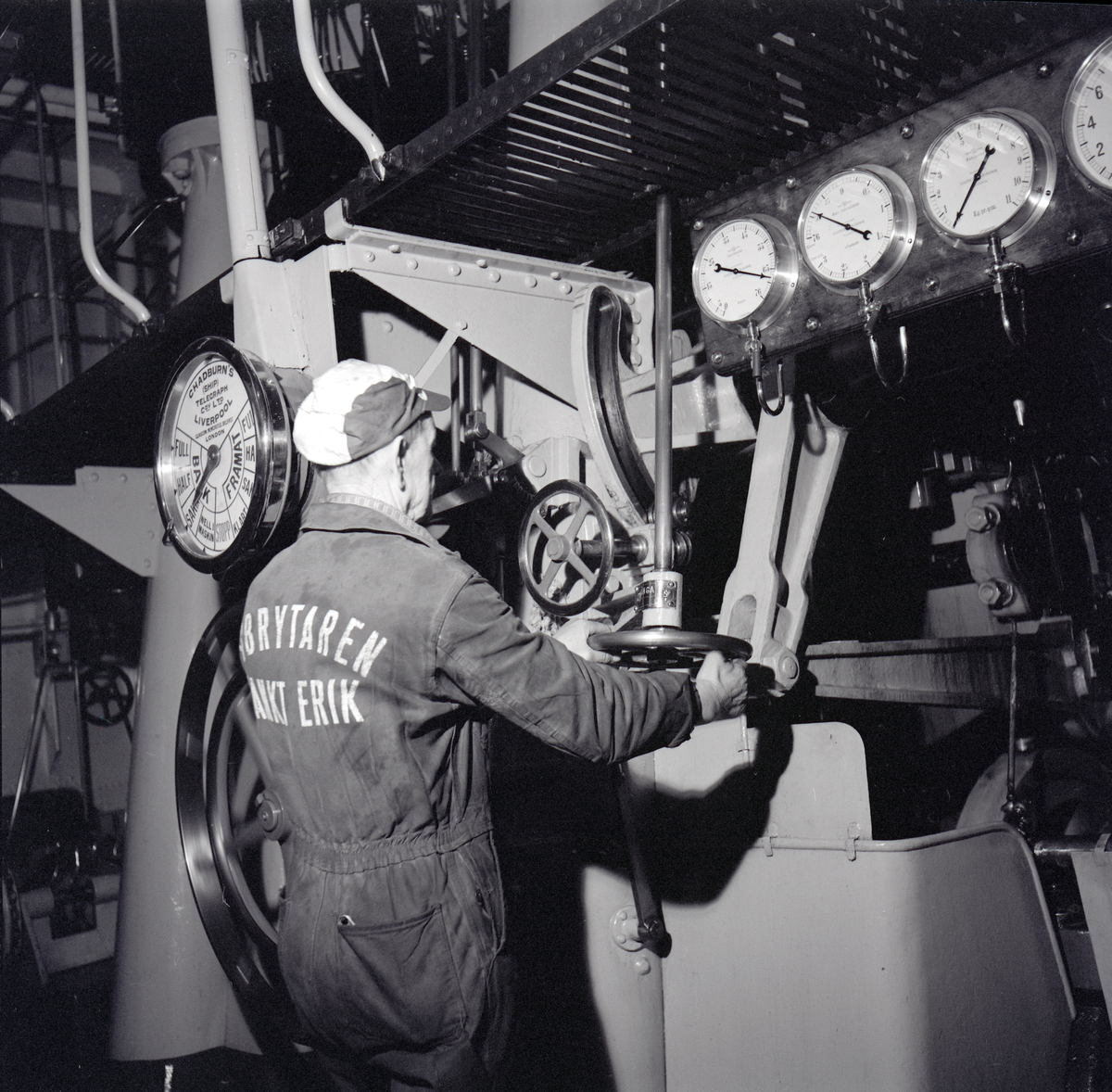 Isbrytaren SANKT ERIK. Ångpådraget i aktra maskin.