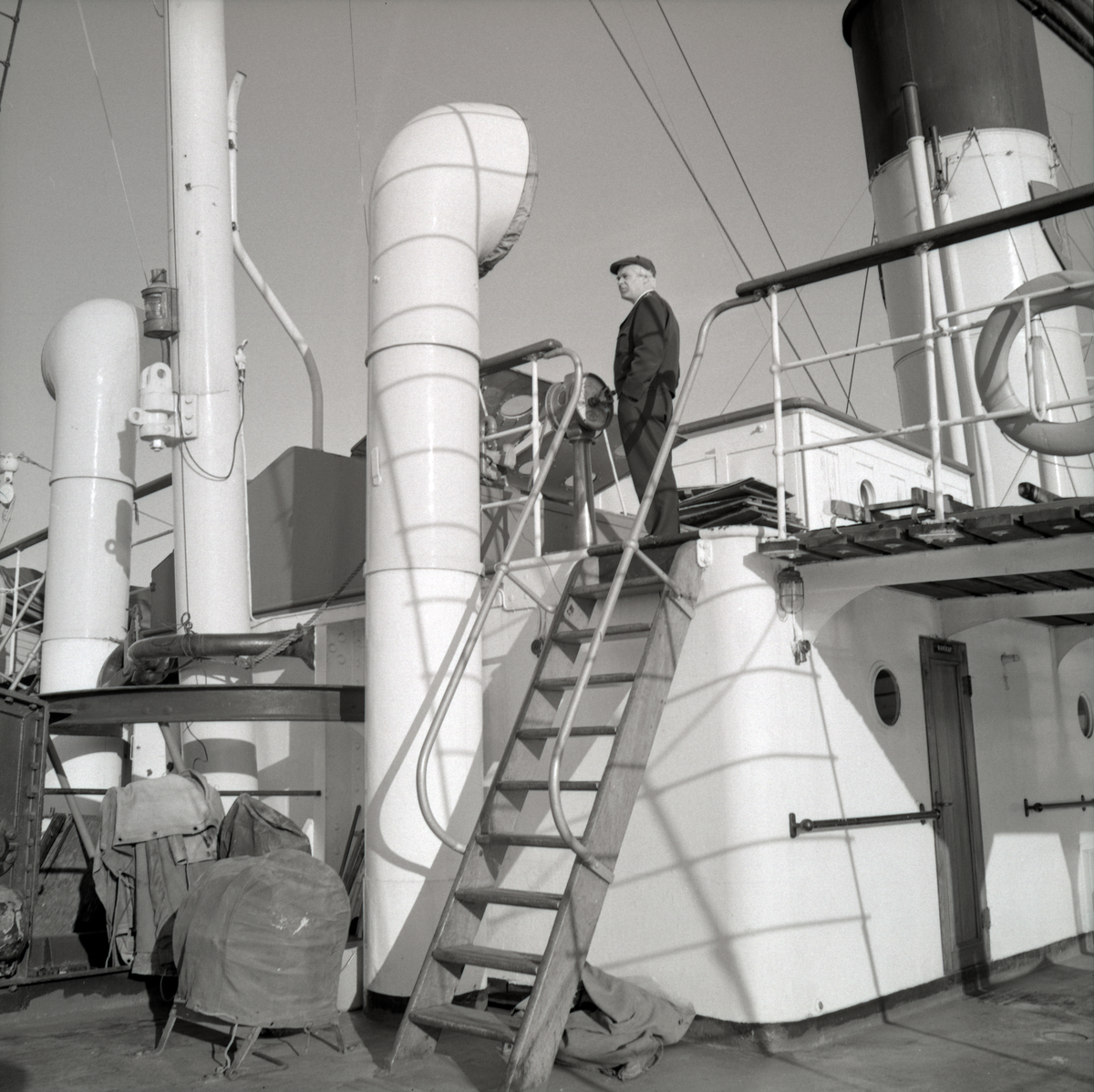 Isbrytaren SANKT ERIK. Kapten Einar Arkrot vid aktra maskintelegrafen.