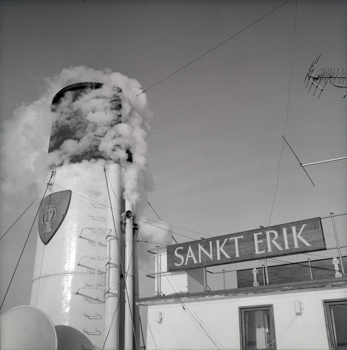 Isbrytaren SANKT ERIK signalerar med ångvislan.
