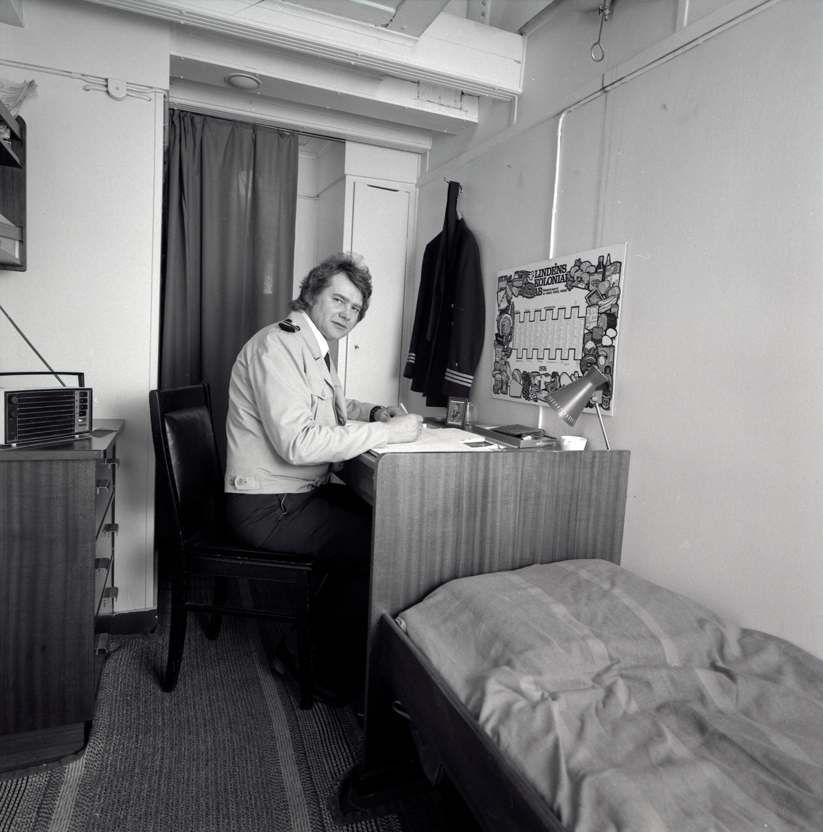 Isbrytaren SANKT ERIK. Stuert Stellan Richardson i sin hytt.
