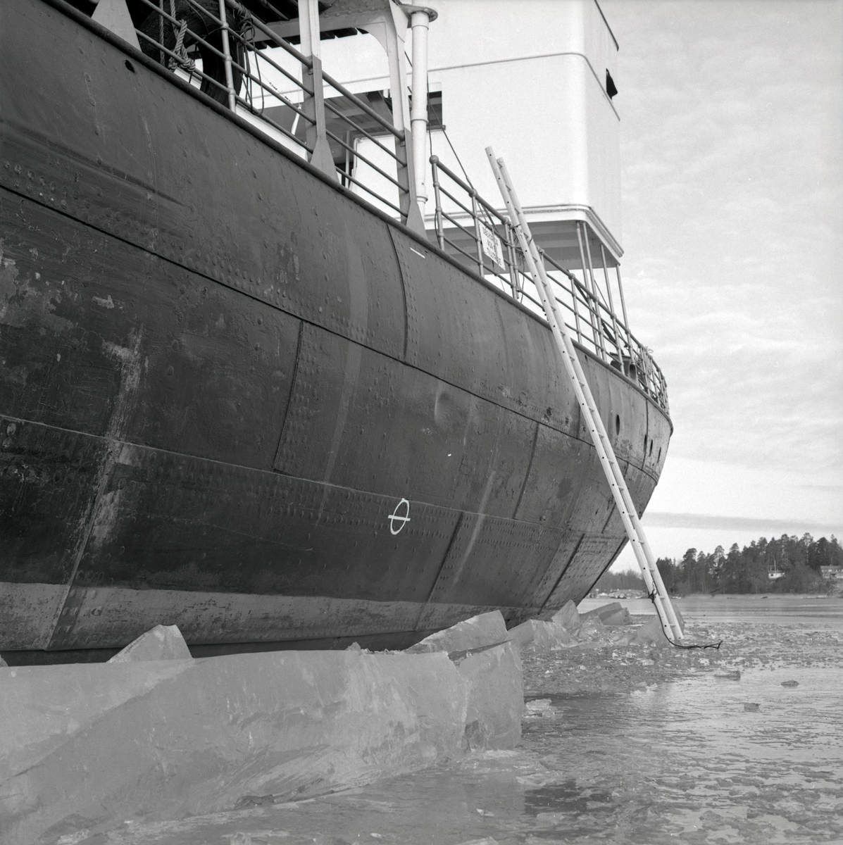 Isbrytaren SANKT ERIK stillaliggande med stege ner till isen.