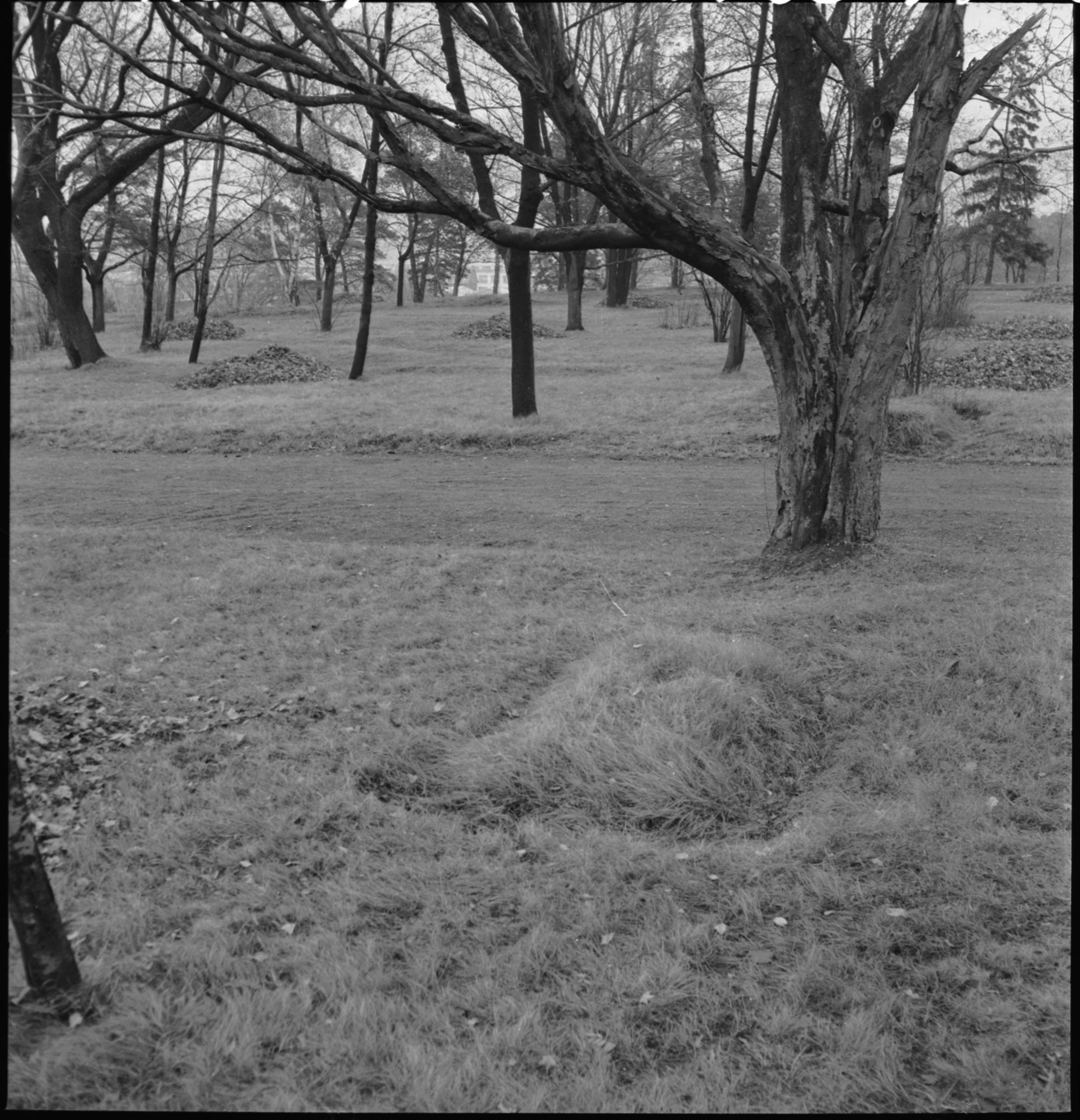 Exteriör, kyrkogårdens f d utsträckning, numera park.