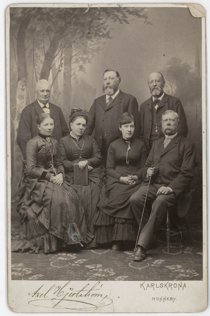 Titel: Porträtt på August Claesson i en grupp med människor.