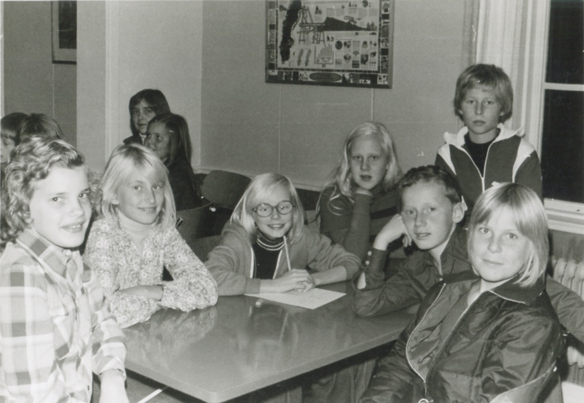 Lägerskola för åk 6 elever från Brattåsskolan, Ransbergs Herrgård i Värmland 1975. Från vänster: 1. Ann. 2. Kristine. 3. Ulrika. 4. Marianne. 5. Lennart. 6. Stefan. 7. Åke.