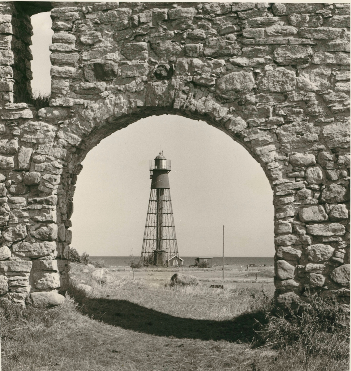 Kapelluddens fyr sedd genom S:a Britas kapell