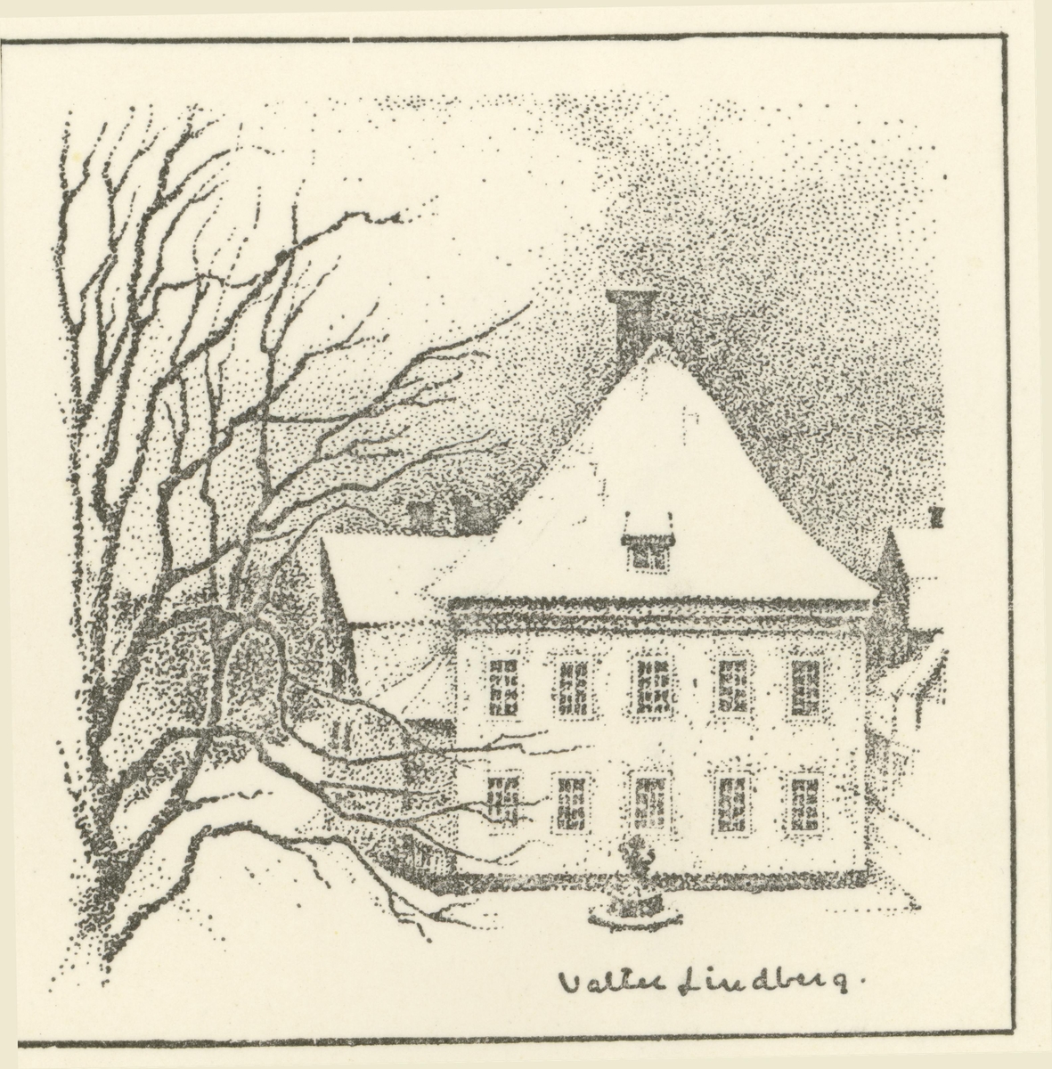Domprostgården i Kalmar. Teckning och litografi av Walter Lindberg 1956.