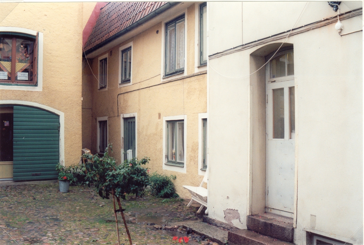 Gårdshuset från 1800-talet ligger utmed tomtens västra gräns, mellan det fd stallet och magasinet (till vänster) och gatuhuset från 1900-talets början (till höger).