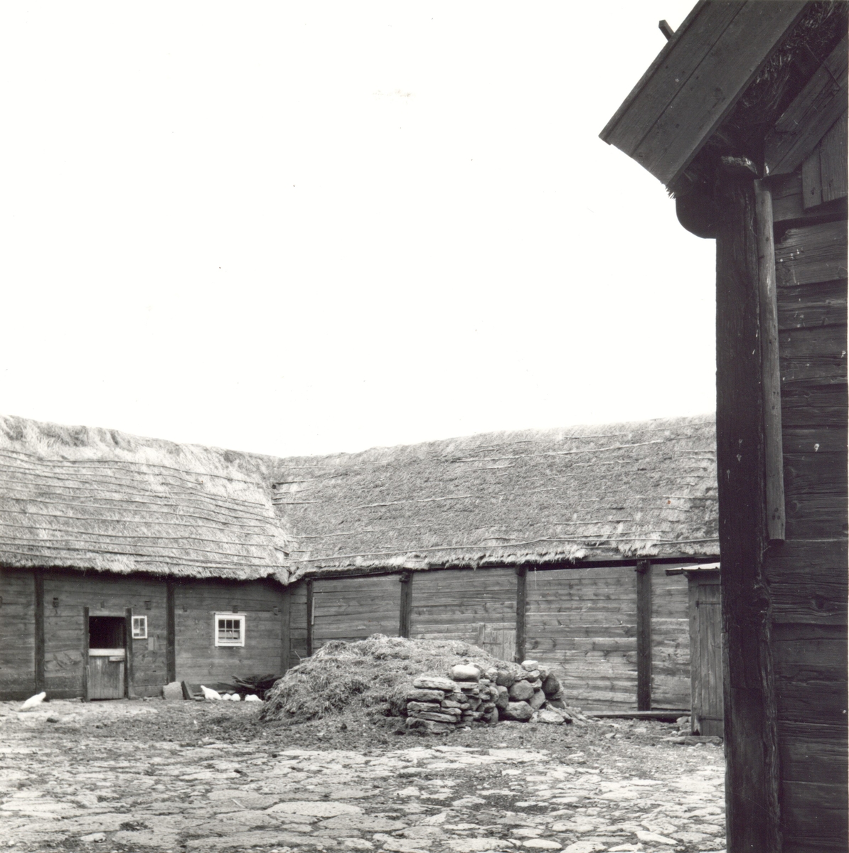Ladugård i skiftesverk och med stråtak.