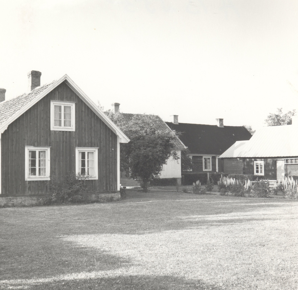 Henry Olssons gård. Från vänster: undantagsbyggnad, huvudbyggnad och brygghus.