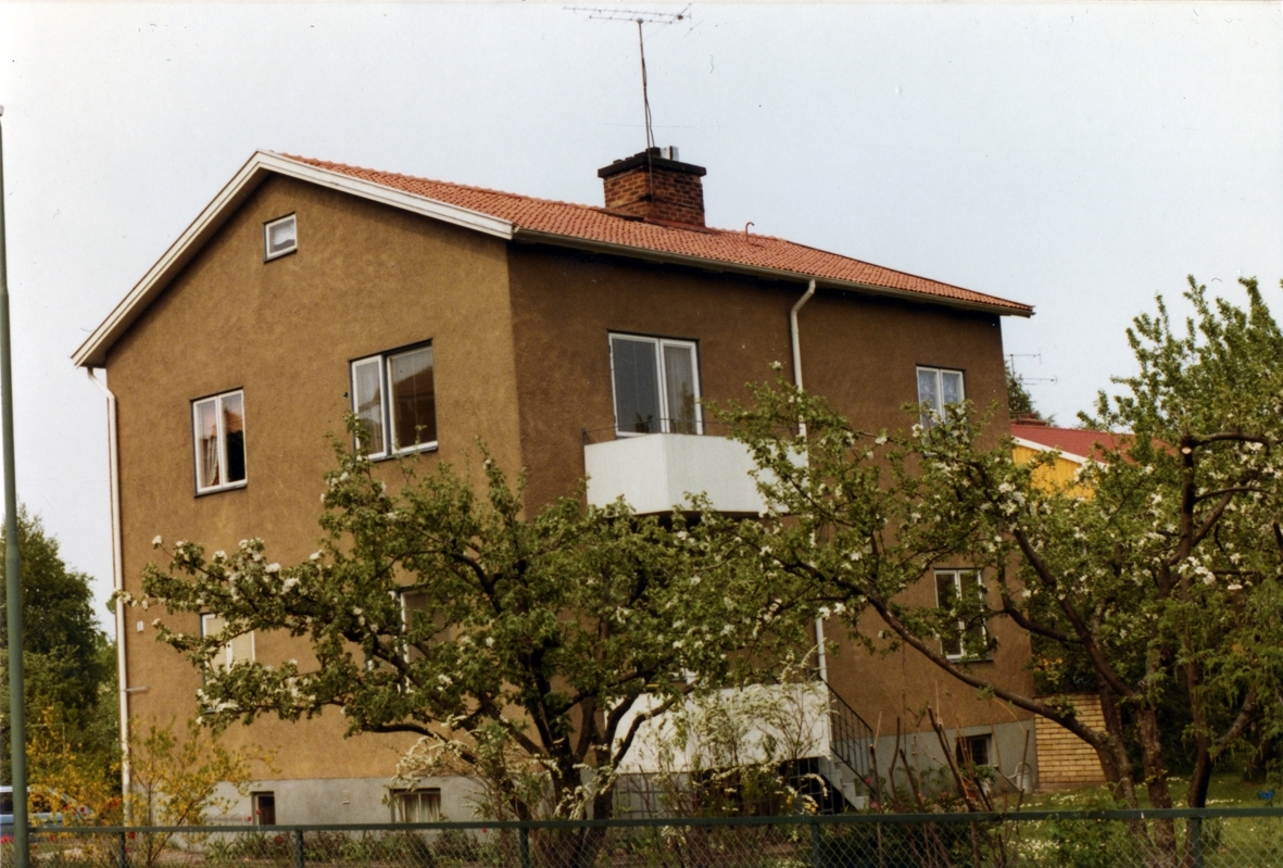 Bostadshus med putsad fasad och sadeltak på Kaptensgatan 10. Byggår 1948. Ägare och byggmästare var Bertil Danielsson.