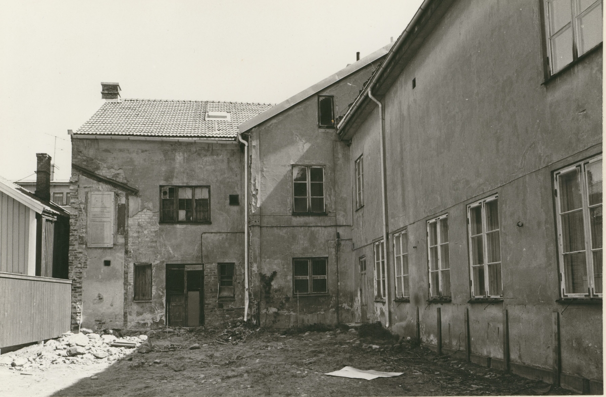 Fasad mot gården, kv. Skrivaren. Bilderna är tagna inom ramen för Kalmar kommuns inventering av Kvarnholmens bebyggelse 1970-1971 och skänkta till länsmuseet.