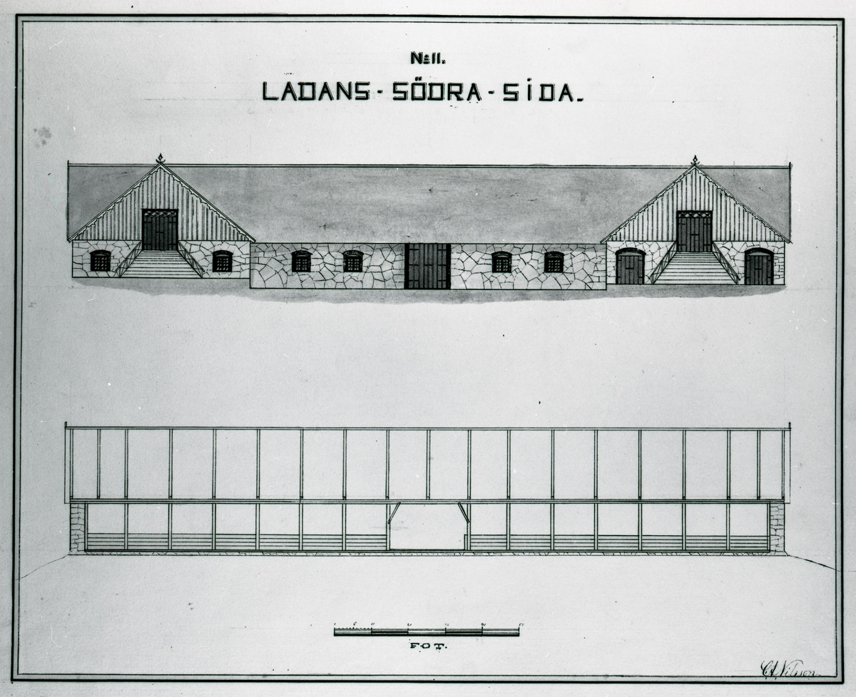 Ladan, södra sidan. Teckning av C A Nilsson.