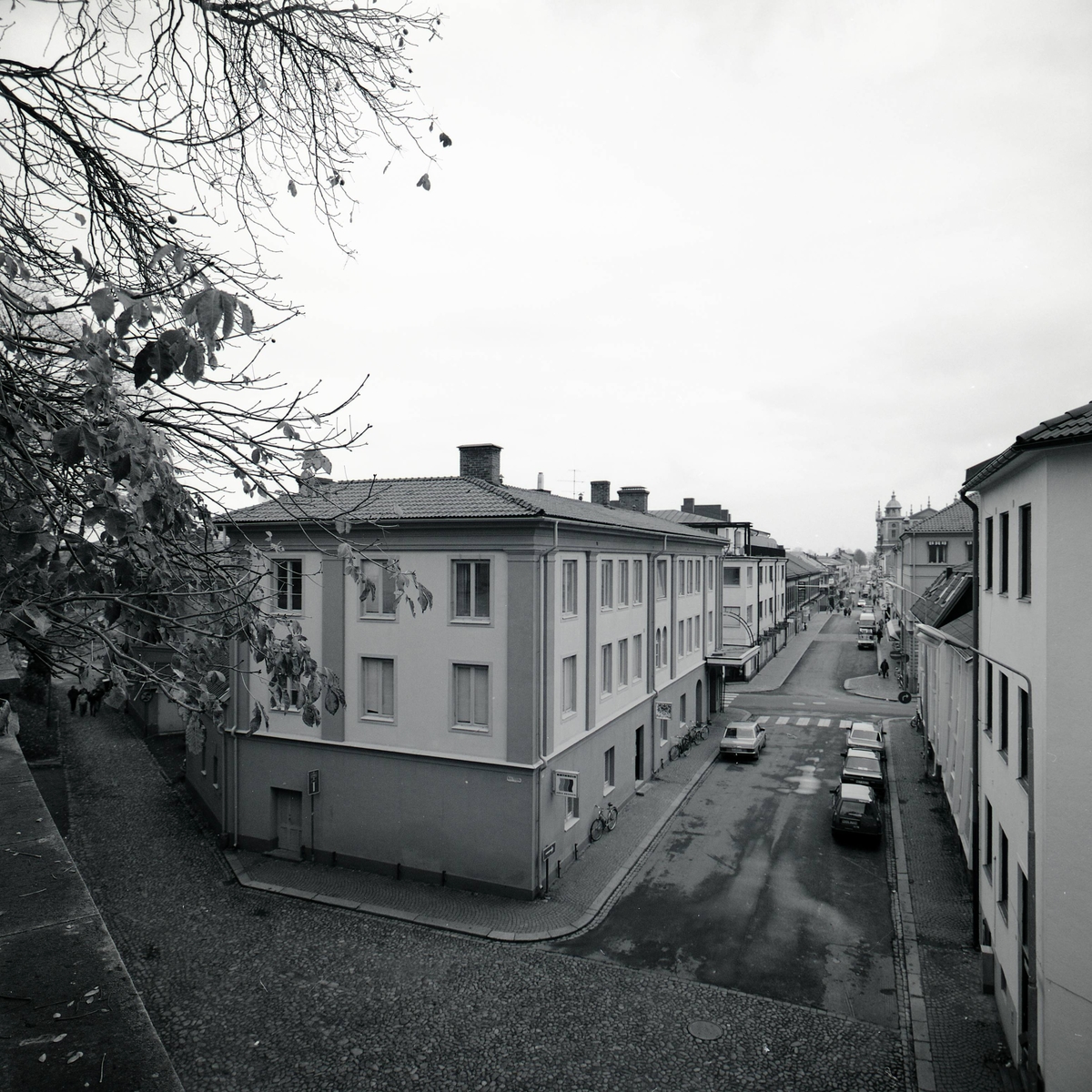 Titel: Huset byggdes ursprungligen som materielhus åt kronan. Sedermera inrymdes här Nisbethska skolan innan det blev biografen Palladium. Numera {2005} är huset butik och restaurang.