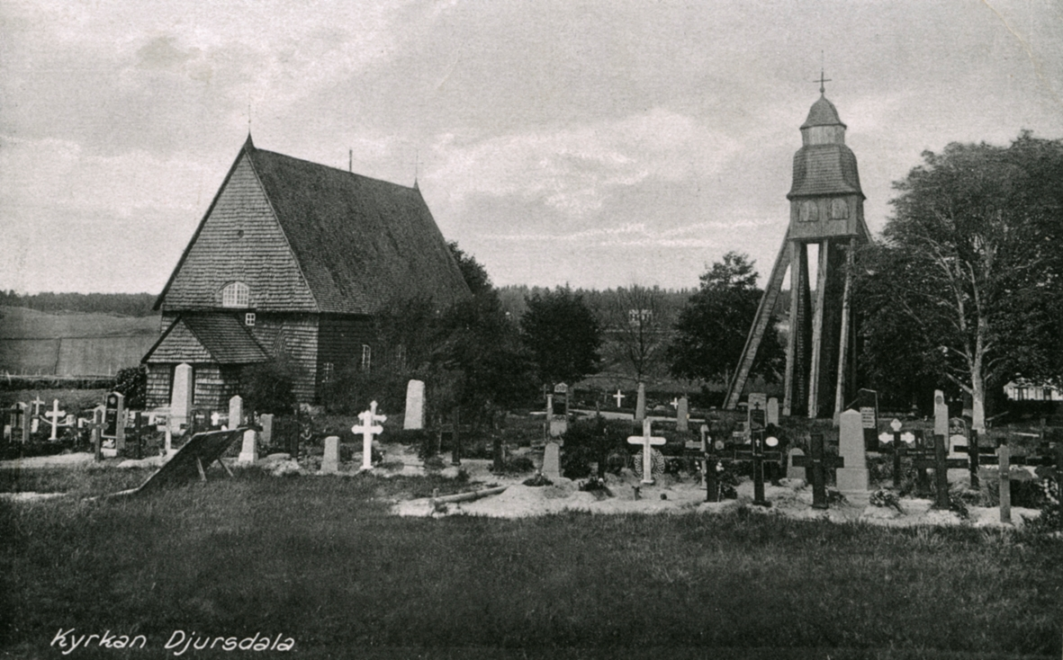 Vykort med motiv från Djursdala kyrka.