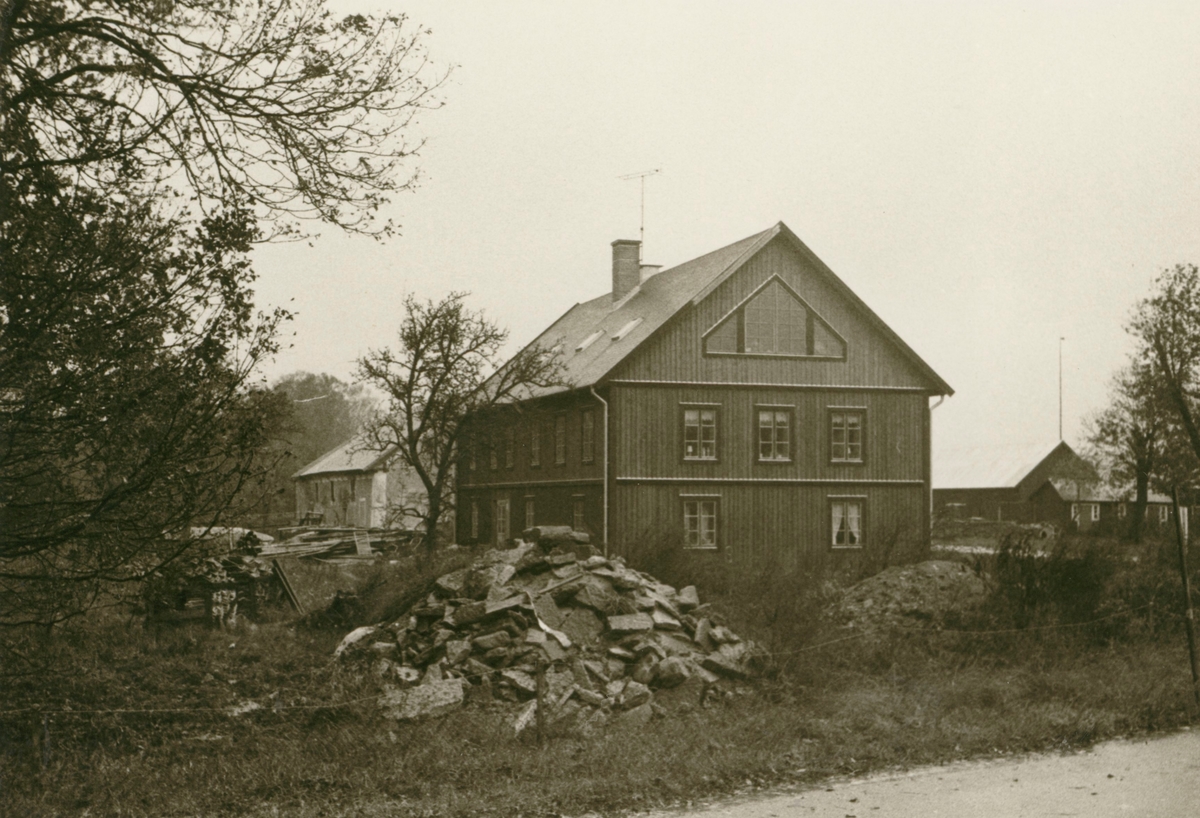 Tvåvånings mangårdsbyggnad med träfasad.