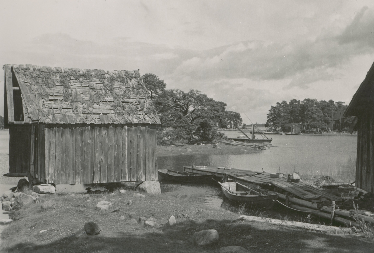 Sjöbod av äldre typ med intilliggande kåser.
