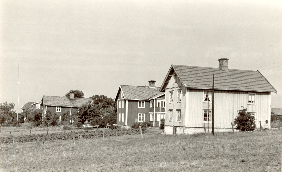 Från höger till vänster: :Karl Petterssons (vitt), Ossian och Henrik Anderssons, Gustaf Anderssons hus. Kellgrens i bakgrunden.