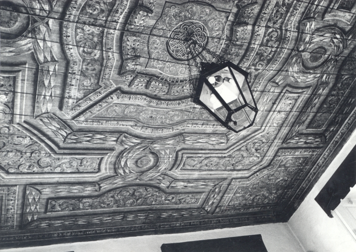 Takmålning i ett av rummen på nedre våningen i Dahmska huset.