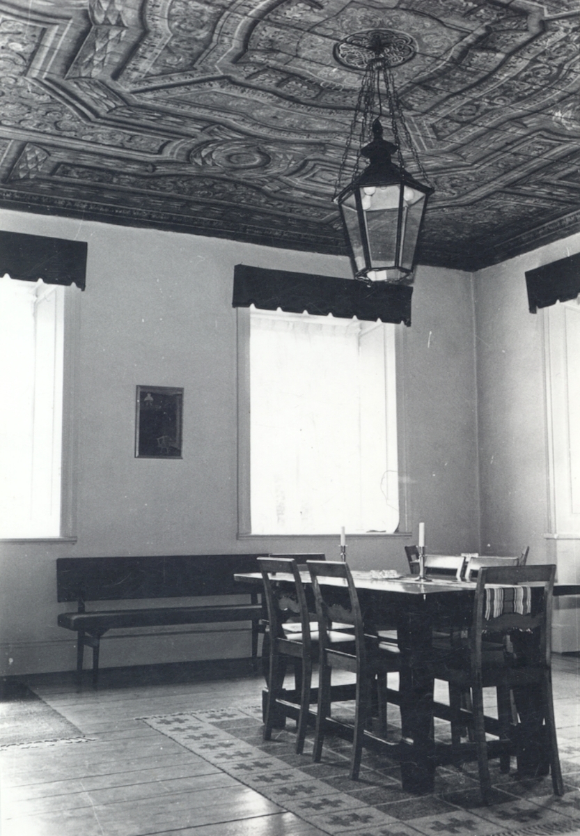 Rum på nedre våningen i Dahmska huset, med takmålning.