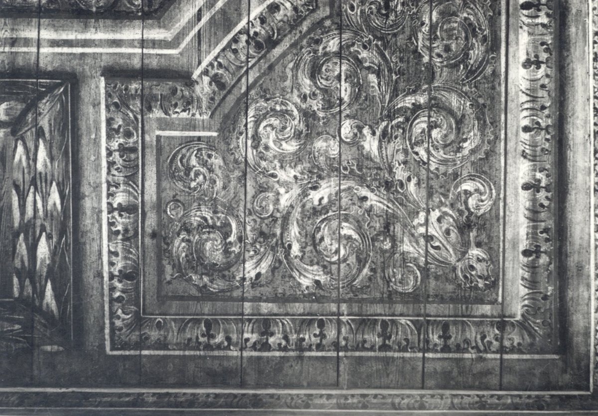 Detalj av takmålningar i grisailletaket - i hörnrummet mot Lilla torget (Västra Sjögatan).