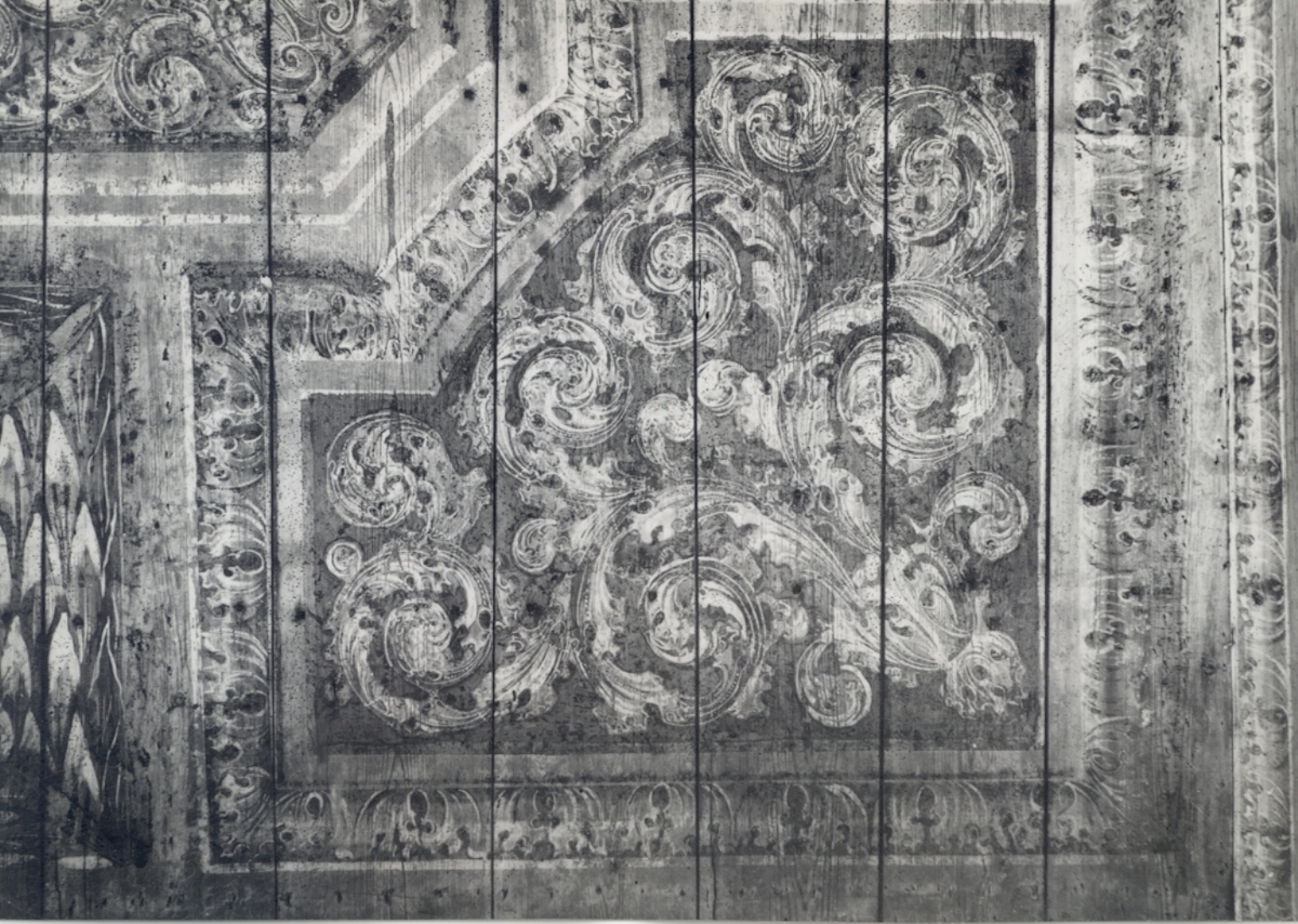 Detalj av takmålningen i grisailletaket - i hörnrummet mot Lilla torget (Västra Sjögatan).