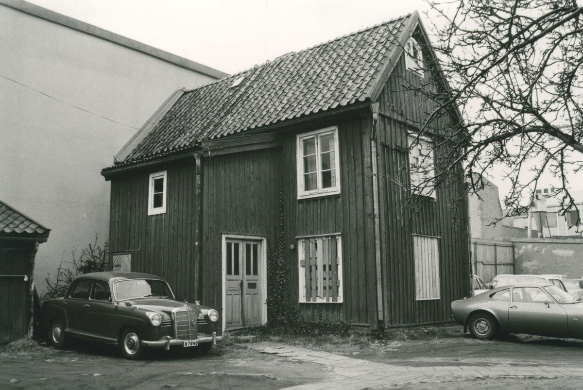 Kvarteret Mästaren 8. Gårdsinteriör med gårdshus i Kvarnholmen i Kalmar.