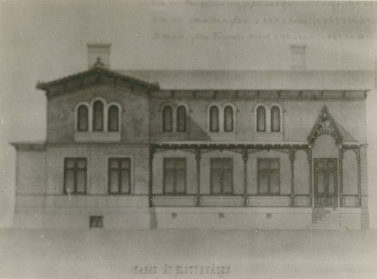 En byggnad med fasaden sedd från Slottsvägen i Kalmar.
