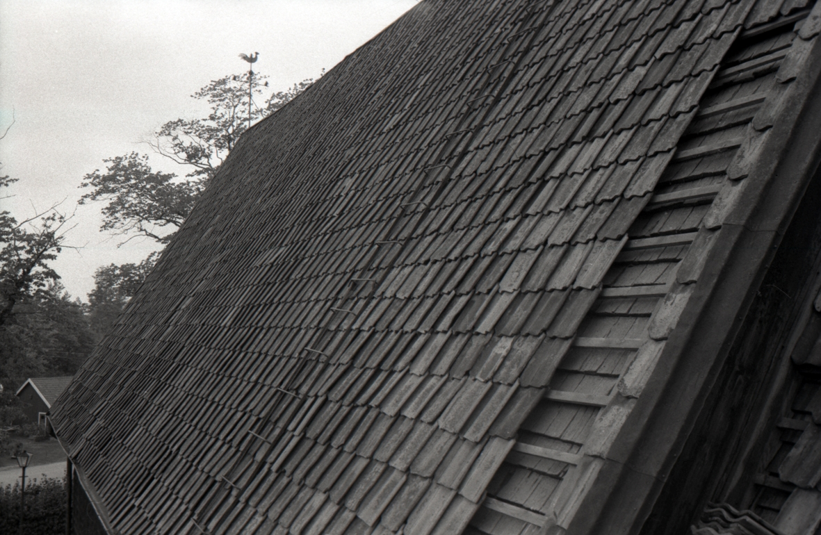 Spåntak, frilagt på långhusets på Pelarne kyrkas södra sida.