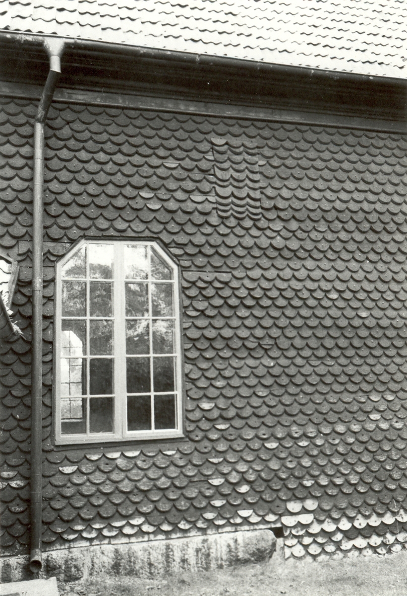 Långhusets på Pelarne kyrka norra fasad mot sakristian.