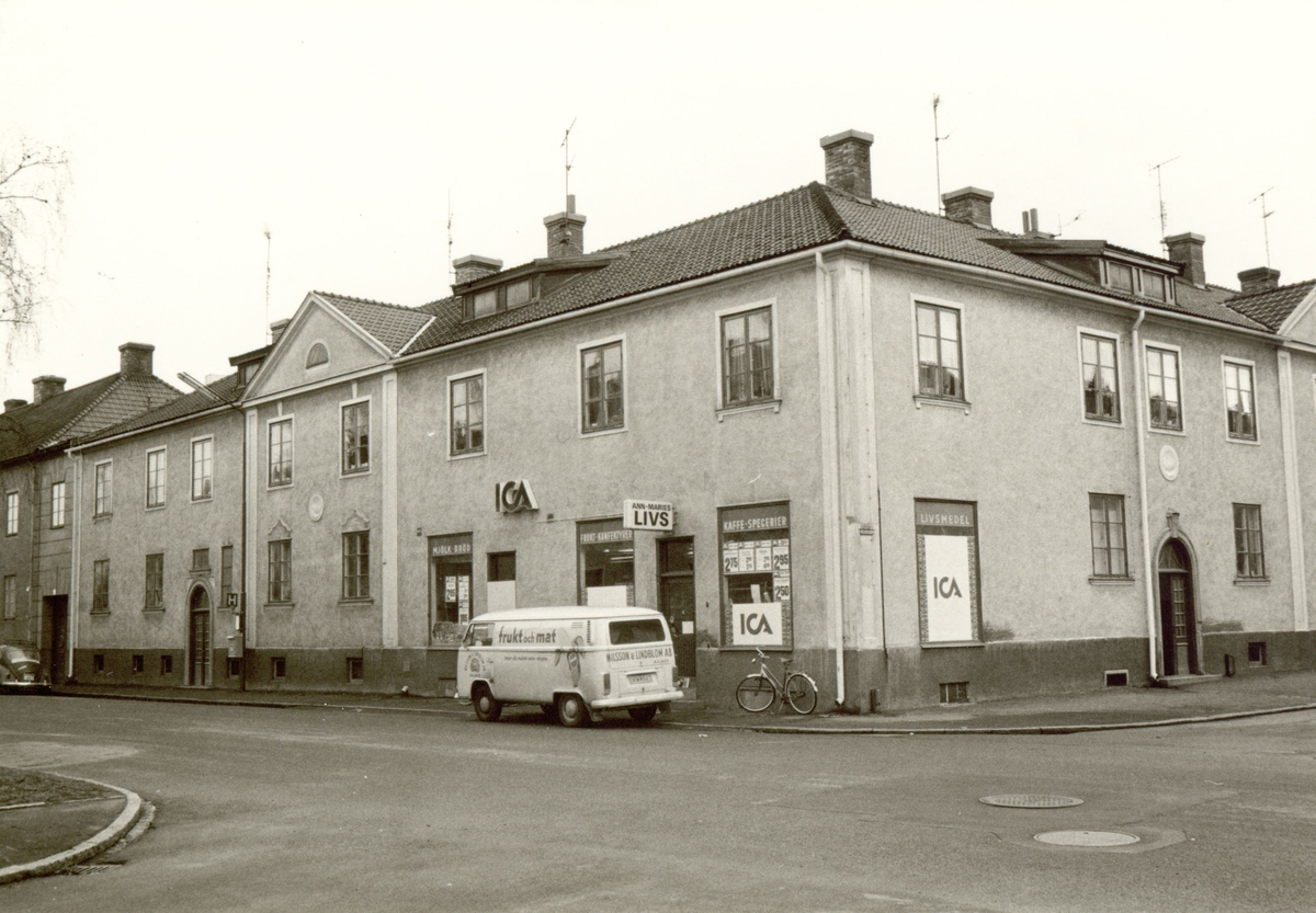 När bilden togs låg en livsmedelsbutik i entréplanet.