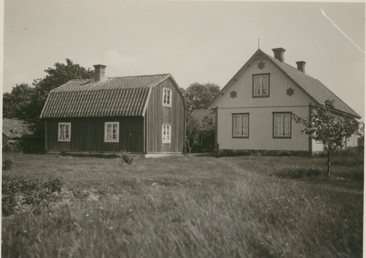 Till vänster "tillbyggning" av undantagsstuga. Enligt uppgift byggd omkring 1850 (1853?) . Timmer i korsknut.