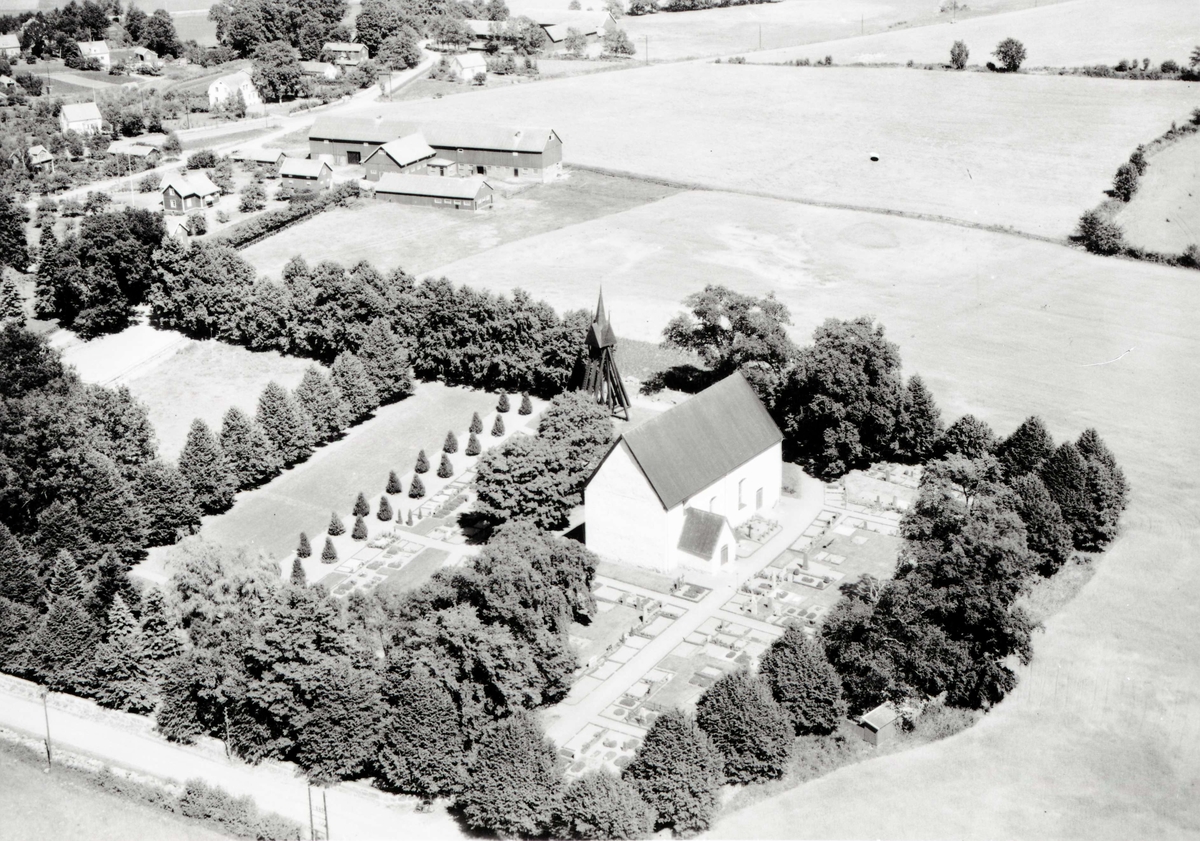 Flygfoto över Dörby kyrka.