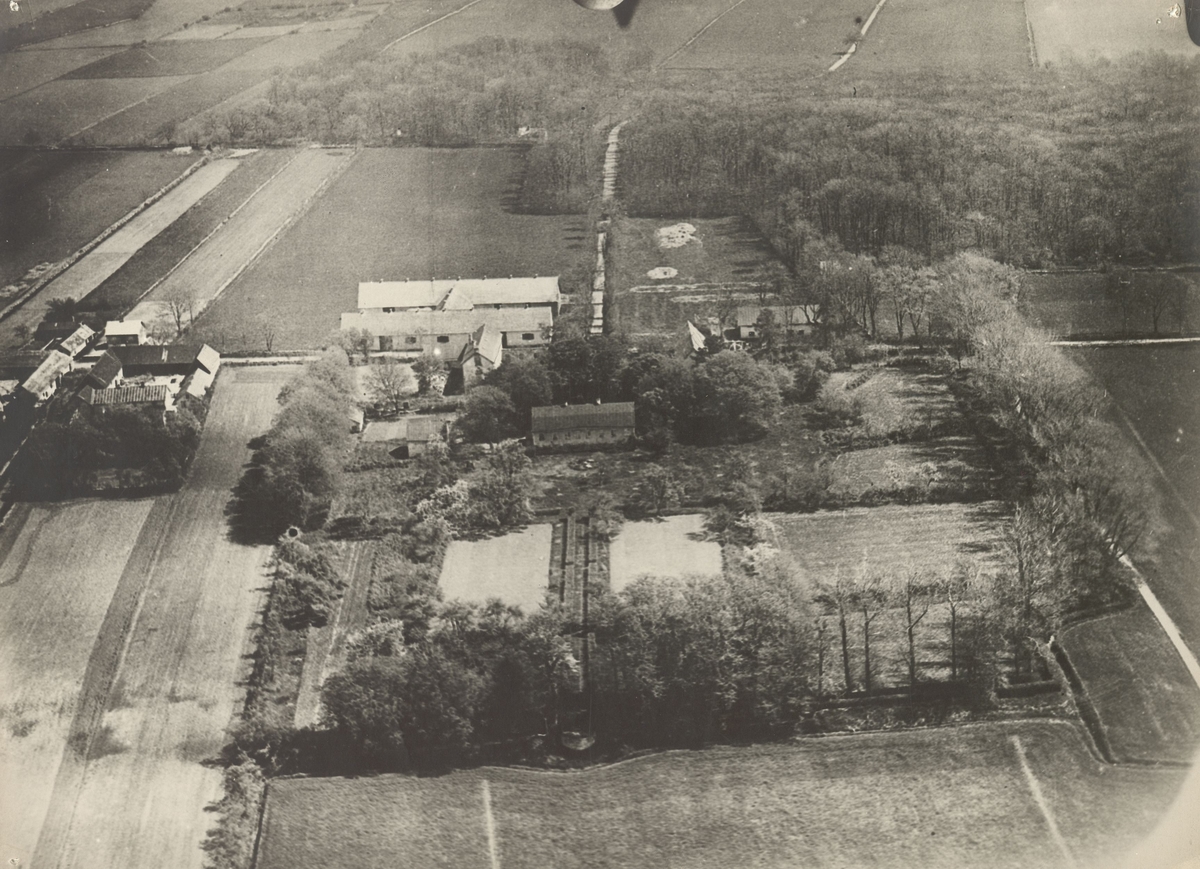 Flygbild visande herrgården i bildens mitt. ill vänster en del av den gamla byn med gårdar byggda enligt vanligt ölandsmanér. Upptill till höger den berömda Västerstads almskog.