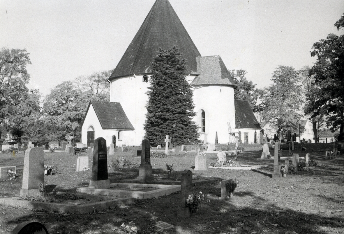 Hagbys rundkyrka sedd från Kyrkogården.