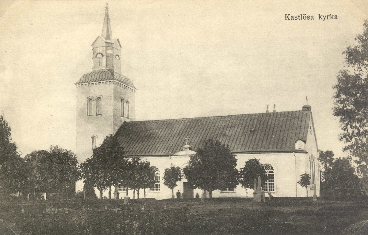 Kastlösa kyrka, vid östra landborgen, består av ett i tre skepp indelat rektangulärt kyrkorum med kor i öster, sakristia i norr och torn i väster. Tanken var att den medeltida klövsadelskyrkans västtorn skulle ingå i den nya kyrkan. Tornet dömdes emellertid ut som alltför oformligt och svagt, varför en helt ny kyrka kom att uppföras norr om den gamla.