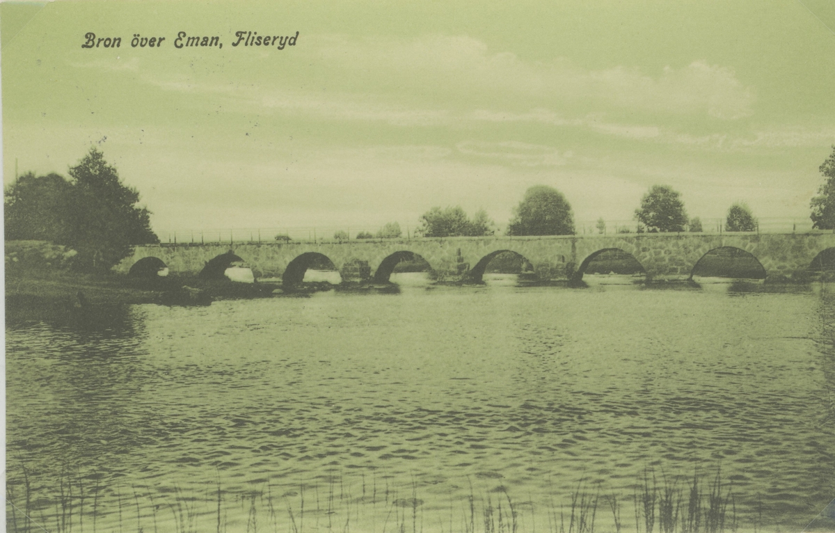 Vykort med Läggevi bro över Emån i Fliseryd.
