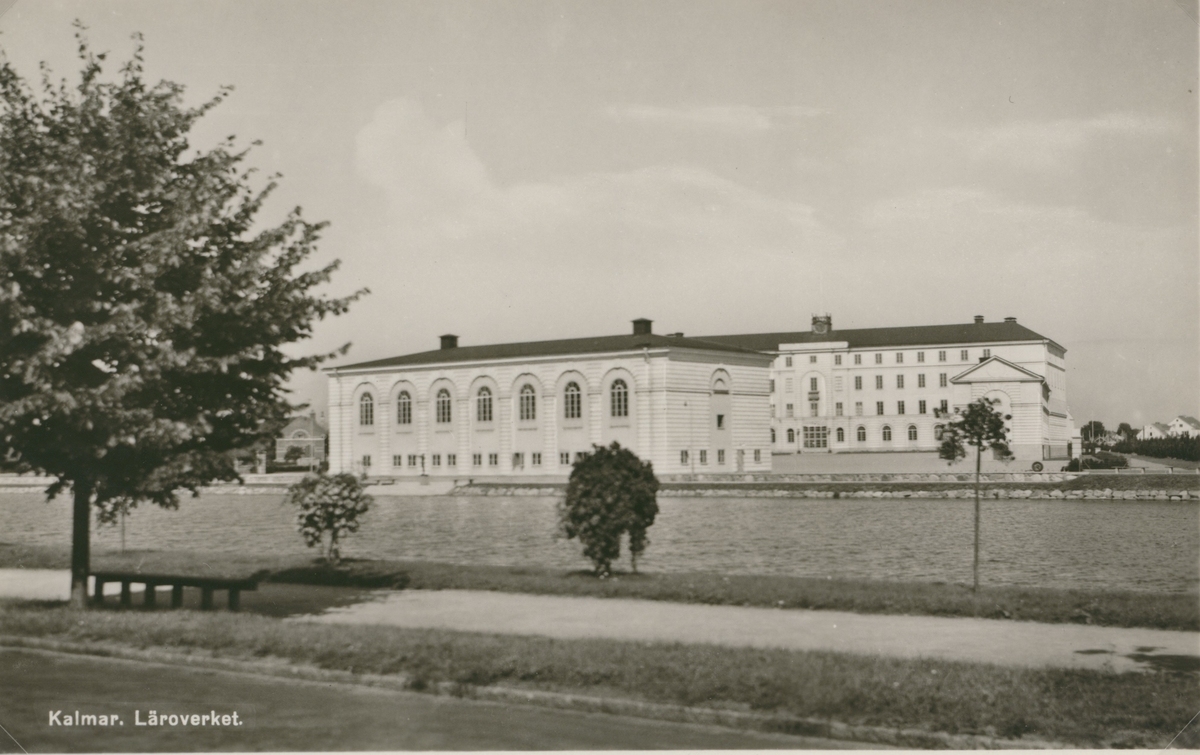 Vykort med motiv av Kalmar högre allmänna läroverk, nuvarande Stagneliusskolan.